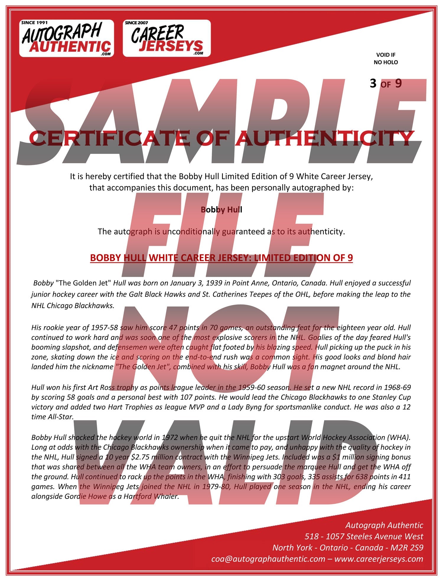 This white Career Jersey is the first in the exclusive ¡°The Flower¡± Edition, numbered 1 of 10. It captures the incredible legacy of Guy Lafleur through a clean, custom-designed layout of his career milestones. A true gem for serious collectors. Includes a Certificate of Authenticity and matching numbered hologram. A standout tribute to a Hall of Famer.